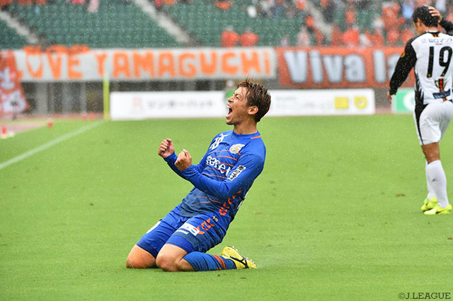 苦しい時間帯をゼロでしのいだ山口は後半19分に先制する。右サイドのFKキッカーを担った小塚が右足でクロスを送り、ニアの岸田がジャンプしながらヘディング。これはクロスバーに嫌われるが、跳ね返りに反応したレオナルド・ラモスが頭で押し込んだ。
